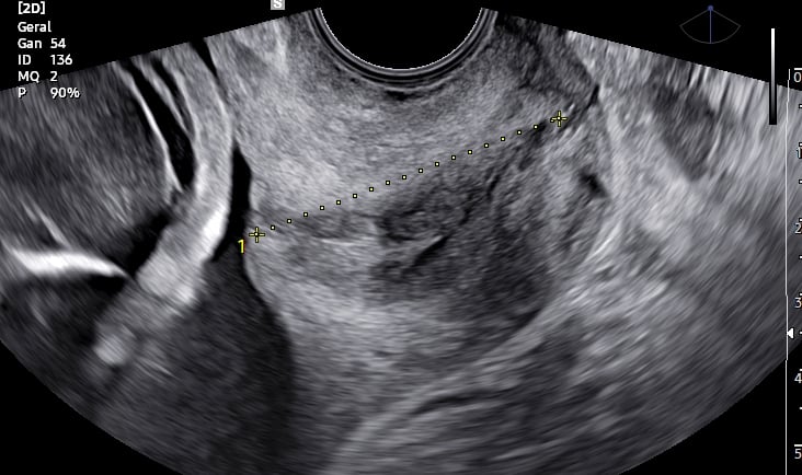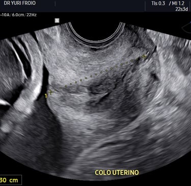Durante o ultrassom, avaliamos o comprimento do colo do útero por via transvaginal. Um colo curto — geralmente considerado menor que 25 mm — pode indicar maior risco de parto prematuro. Essa medição é simples, rápida e indolor, e pode fazer toda a diferença no acompanhamento da gestação.